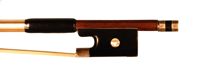 Round stick. Silver-mounted ebony frog with mother of pearl eyes. Ebony button with two silver rings. No stamp. Made about 1885 - 1890.